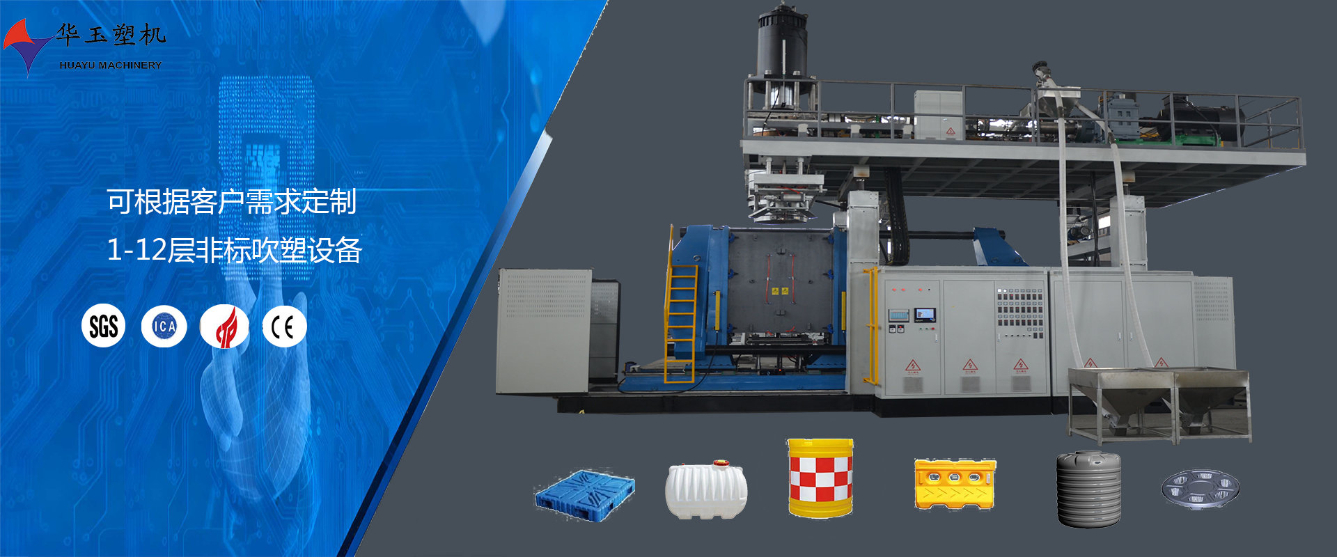 濰坊市華玉塑料機(jī)械有限公司創(chuàng)辦于貳零零貳年,是超大型全自動(dòng)中空吹塑設(shè)備專業(yè)生產(chǎn)廠家。公司融合國(guó)內(nèi)外先進(jìn)技術(shù)和理念,專業(yè)設(shè)計(jì)、生產(chǎn)、銷售一層到十層的大型全自動(dòng)中空成型機(jī)組。我公司生產(chǎn)的各型號(hào)吹塑機(jī)可生產(chǎn)50升到30,000升的各類塑料水桶,噸桶、雙環(huán)桶、水馬、路錐、隔離墻托盤、桌板、浮筒、皮劃艇、工具箱包等中空制品。優(yōu)良的品質(zhì)、穩(wěn)定的性能、優(yōu)越的性價(jià)比使公司產(chǎn)品不僅暢銷國(guó)內(nèi)市場(chǎng),并出口到亞洲、東南亞、中東、歐洲、北美、南美、非洲等80多個(gè)國(guó)家和地區(qū),深受客戶的好評(píng)...
